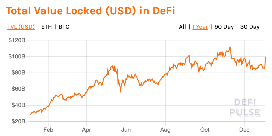 Decentralized Finance hasn’t even been around that long, but it’s already had an incredible impact on how we view money. It had a great run in 2020 but still only trades at less than 1% of global banks with $120 Billion in TVL.