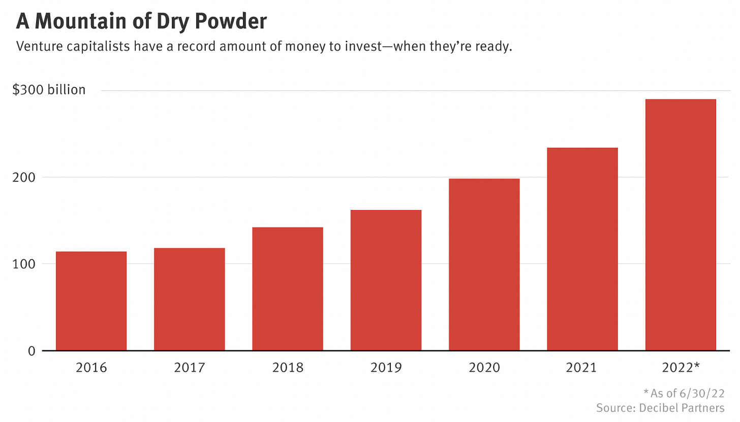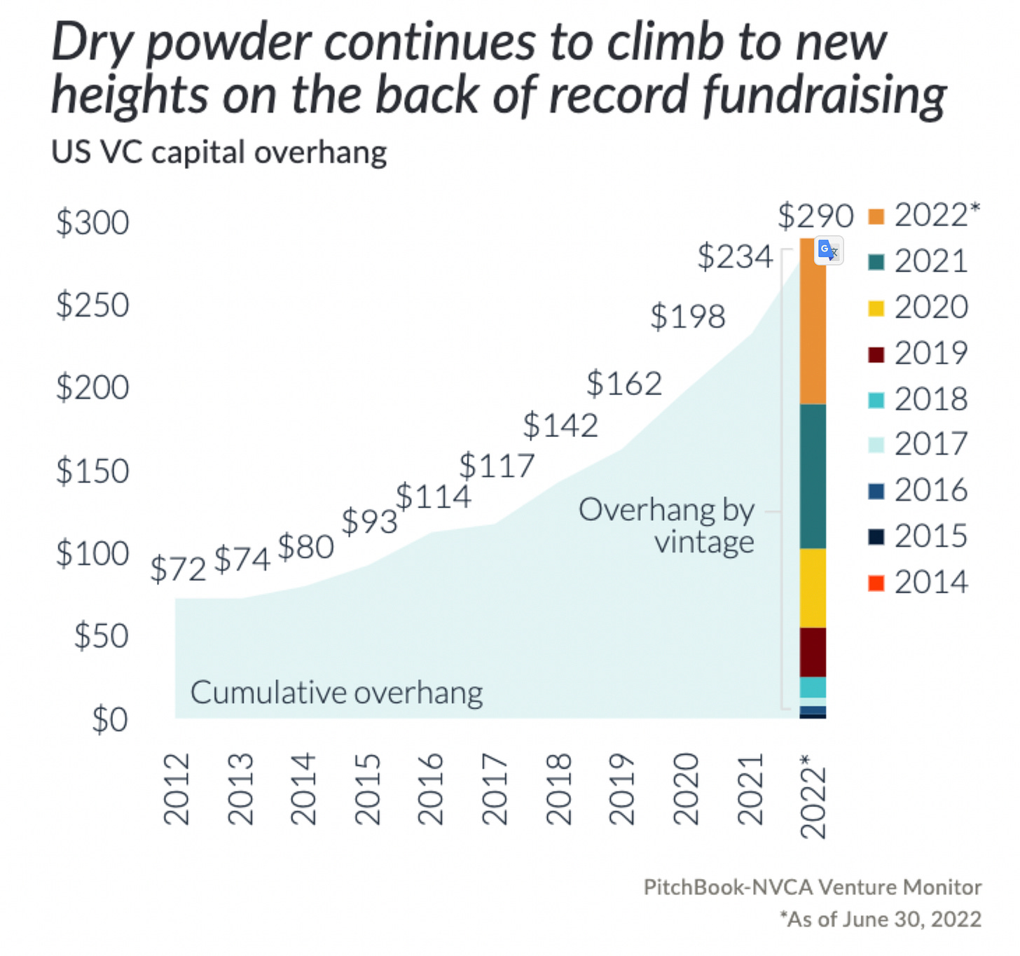 There are billions of dollars outside of VC money not accounted for that are also sitting on the sidelines in the form of sovereign wealth funds, private equity firms, and nontraditional investors.